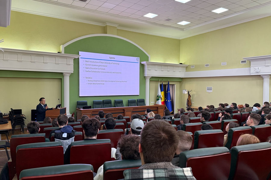 メディア学部長三上 浩司教授は、モルドバ国立大学およびモルドバ工科大学において講演を実施し、日本の文化の一環としてコンテンツ分野の教育や人材育成,産業発展に関する知見を紹介しました。講演には多くの学生や教職員が参加し、活発な意見交換が行われました。