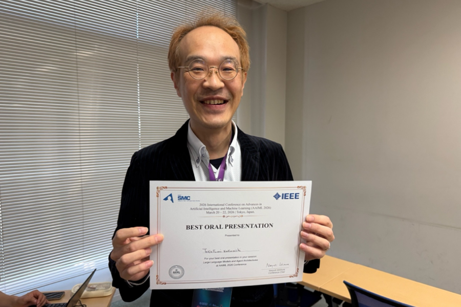 本コンピュータサイエンス学部TransMedia Tech Labの中西 崇文教授は、2026年3月に中央大学で開催された国際会議2026 International Conference on Advances in Artificial Intelligence and Machine Learning(AAIML 2026) において、論文が採択され、発表し、優れた口頭発表に対して授与される「Best Oral Presentation」を受賞しました。