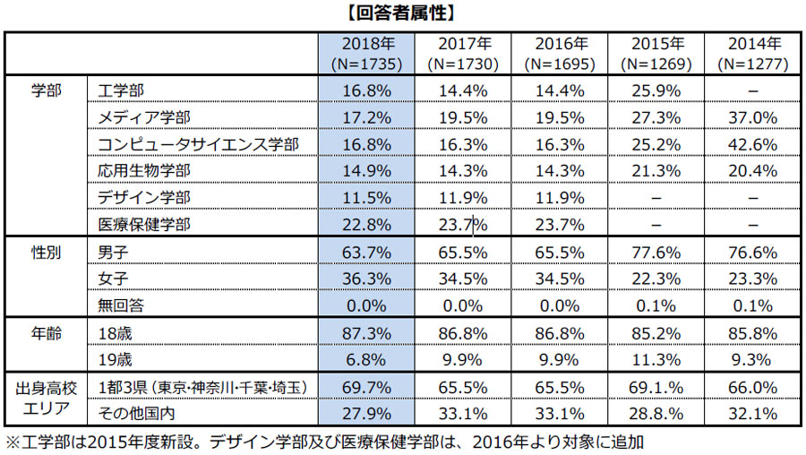 | 調査対象: | 2018年の東京工科大学新入生(八王子キャンパス、蒲田キャンパス) | |