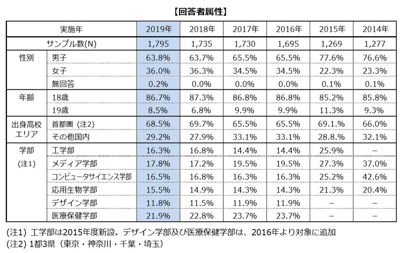 | 調査対象: | 2019年の東京工科大学新入生(八王子キャンパス、蒲田キャンパス) | |